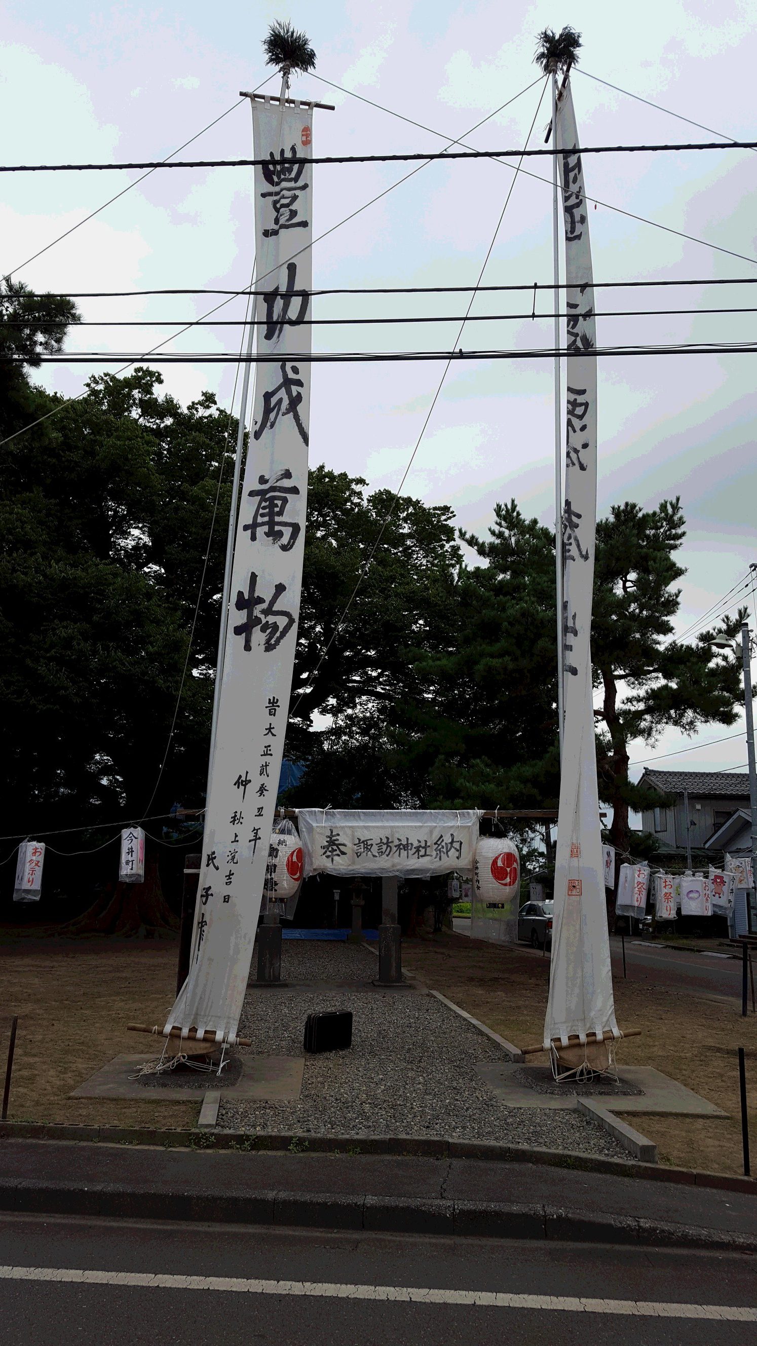 8月21日に祭祀を執り行いました。昔は今井村を玄蕃村と称し、農業の守護神たる御霊を奉る 諏訪神社 様がございます。大きな風と共になびく旗、お宮に寄り添うように御神木が境内にそびえております。また提灯は氏子の皆様が精魂込めた作りとなり、夜昼問わず境内を彩ります。