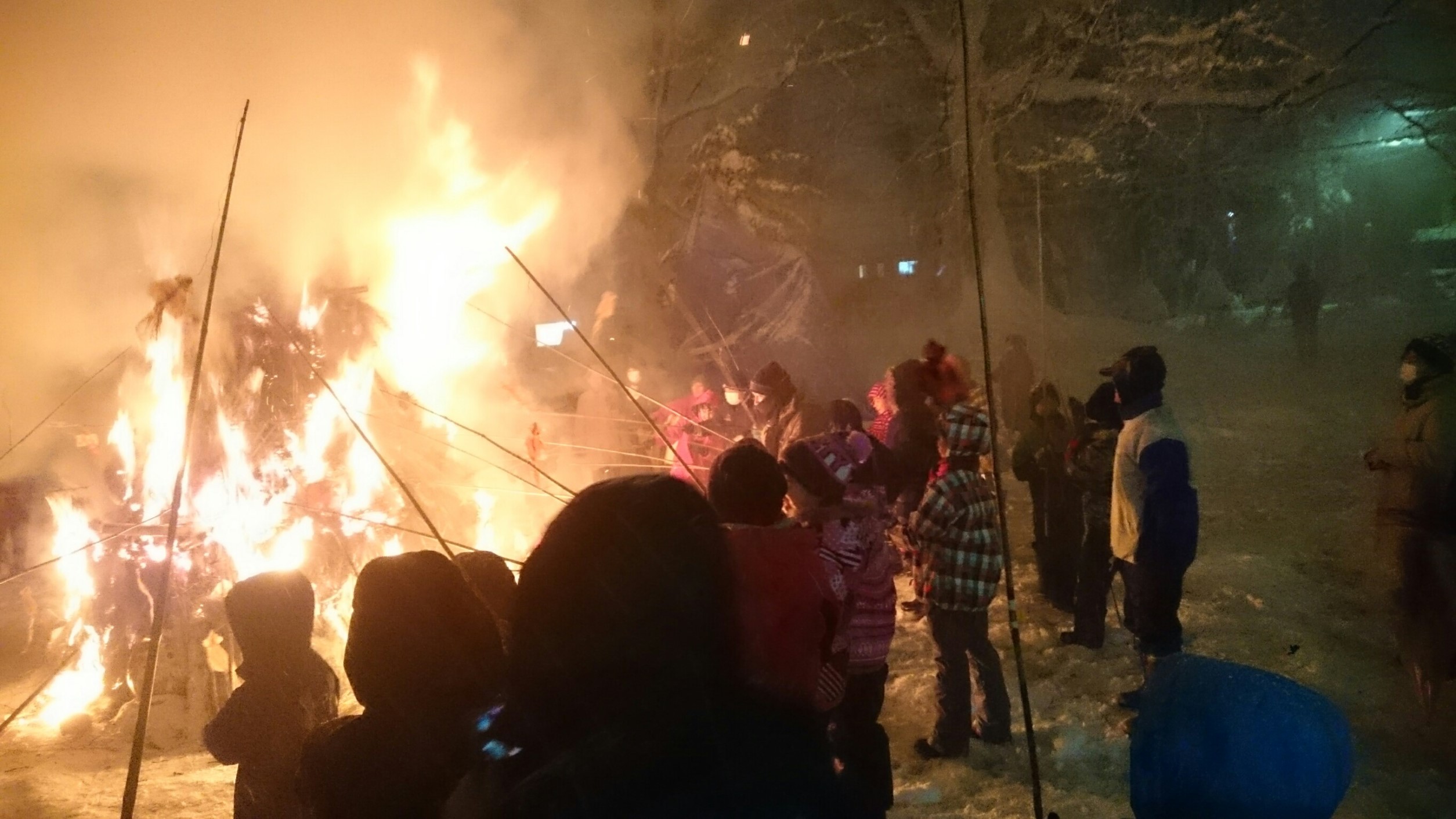 点火と共に、みるみる大きく祭火が立ち上り蔵王地区を明るく照らします。