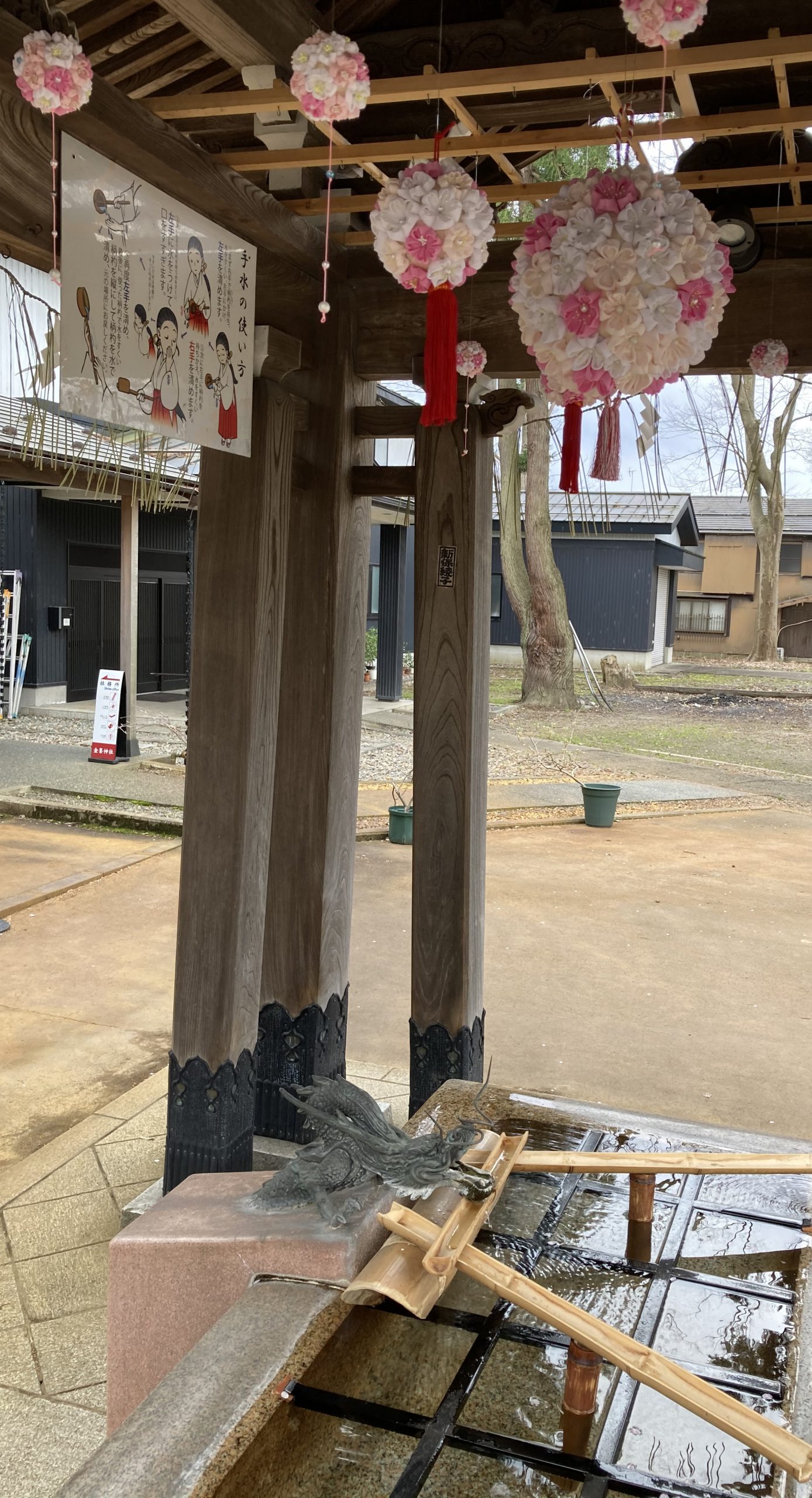 明日からの花手水に先立ち、手水舎の装飾をしていただきました。