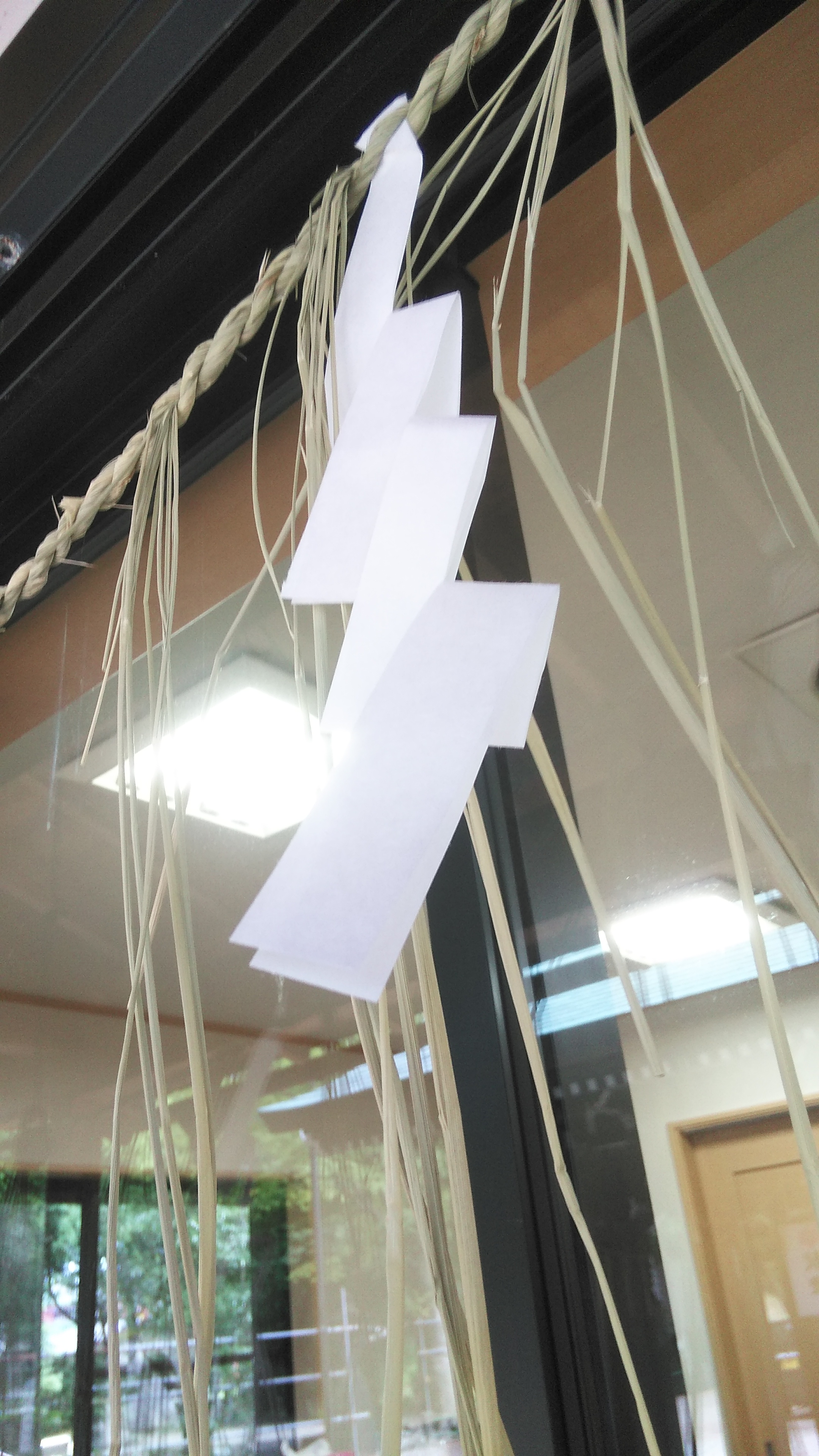 一枚の紙から「紙垂」を制作いただき、最後は社務所前の注連縄に結びました。