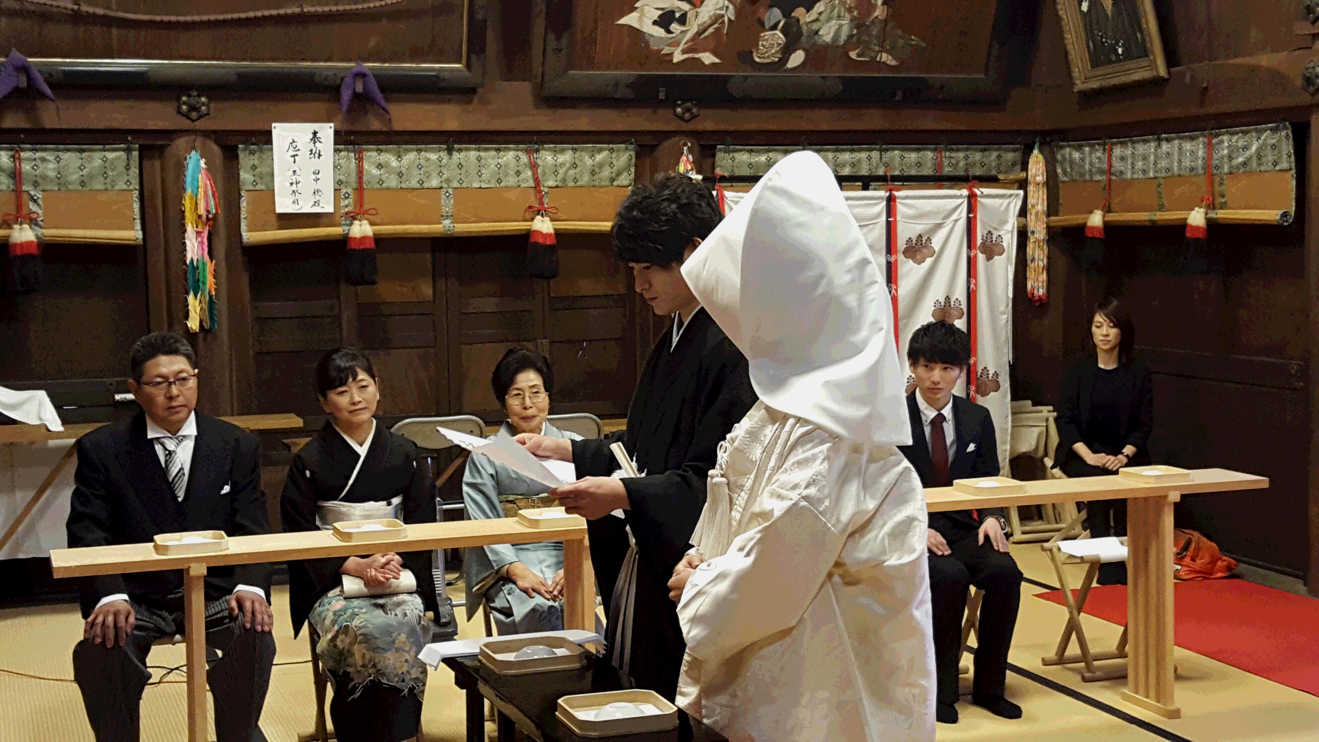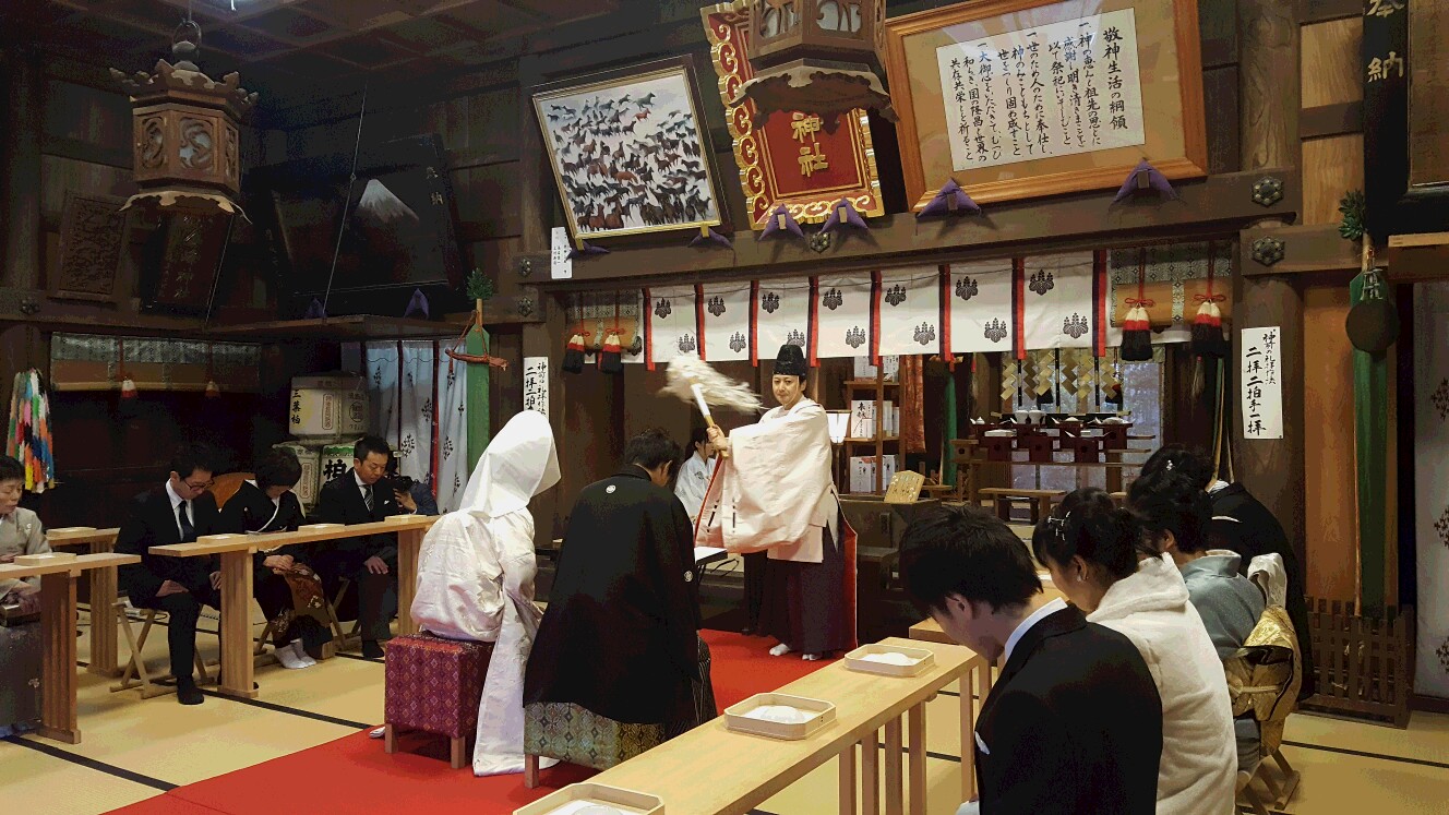 写真は修礼(しゅらい)を行っているところです。修礼というのはいわばリハーサルです。祭儀というのは祭式という作法のルールに則って行われますが、祭儀の中に荘厳さや神秘性、敬いの念がこもったものでなくてはなりませんので所作の確認が必要です。