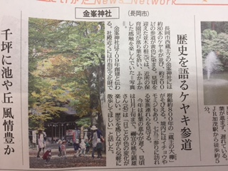 先日新潟日報の記者の方が来社され、境内の紅葉について取材をされていきました。