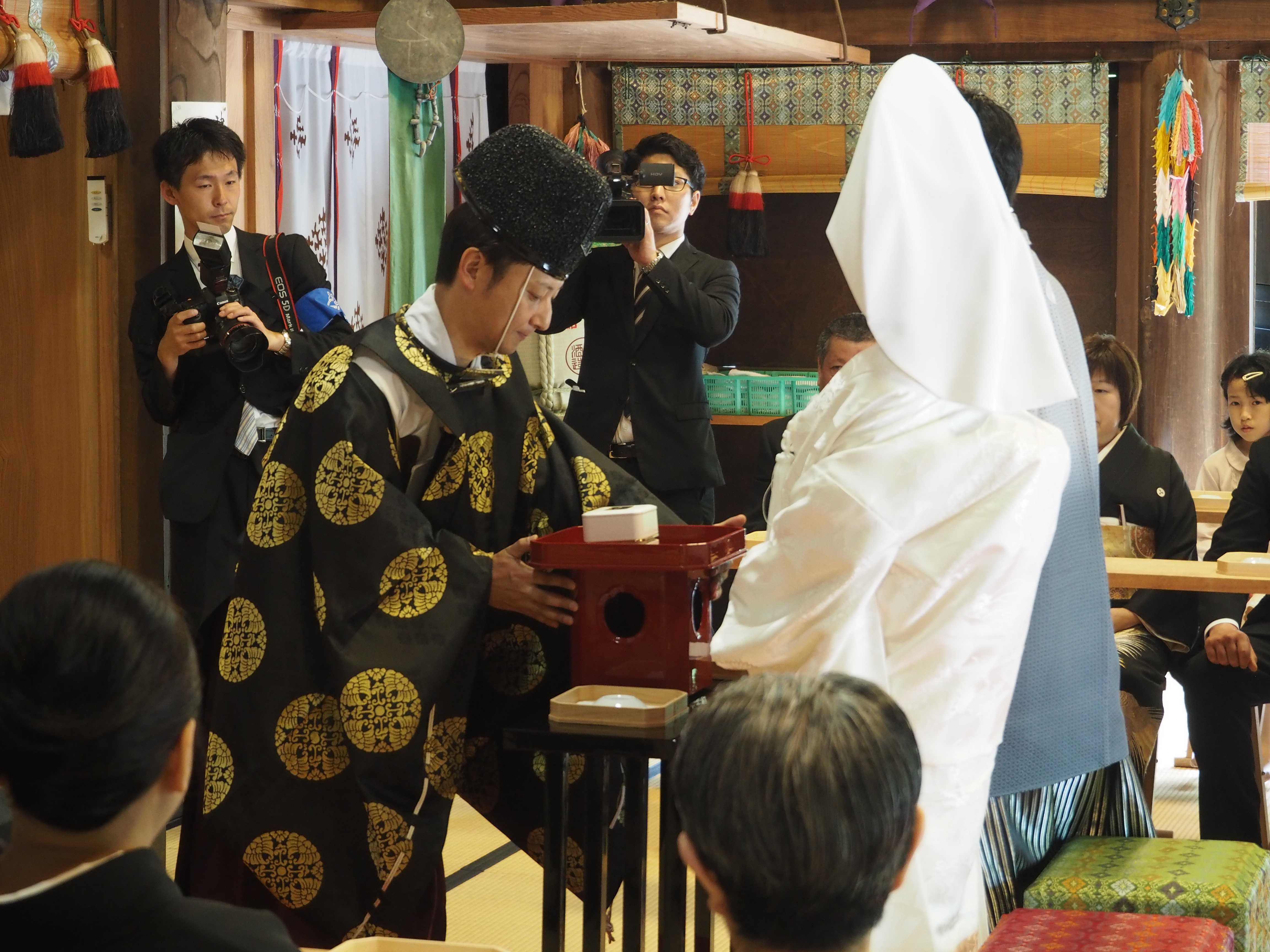 誓詞奏上(セイシソウジョウ・誓いの言葉)の時に新婦が感極まって涙されました。