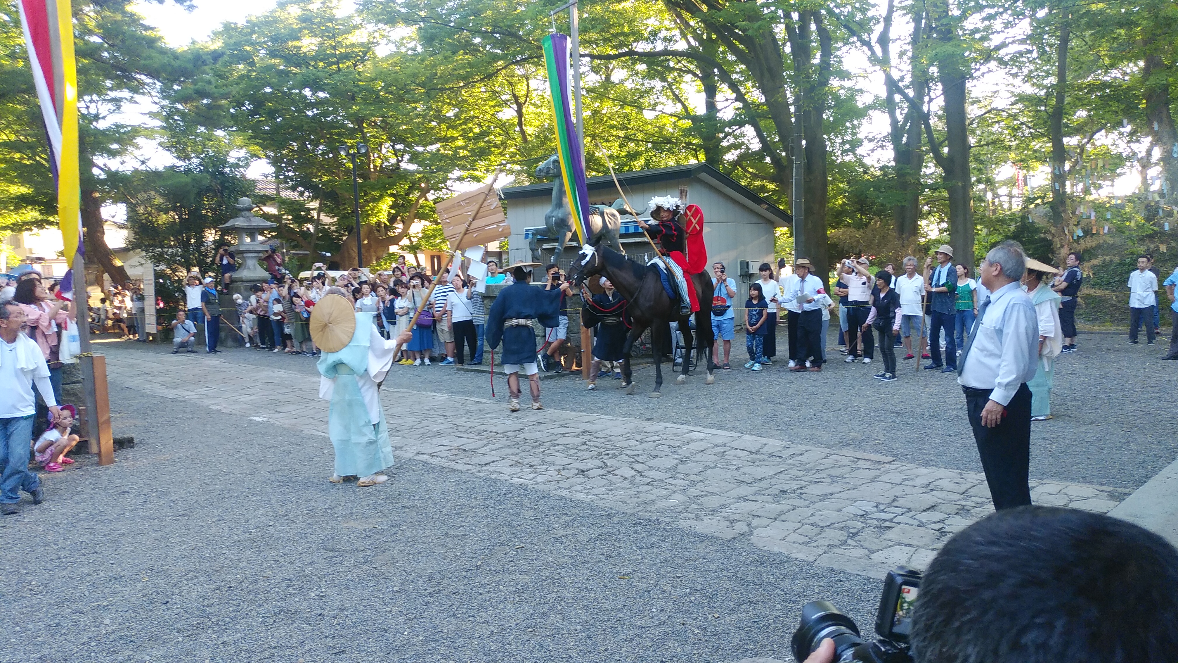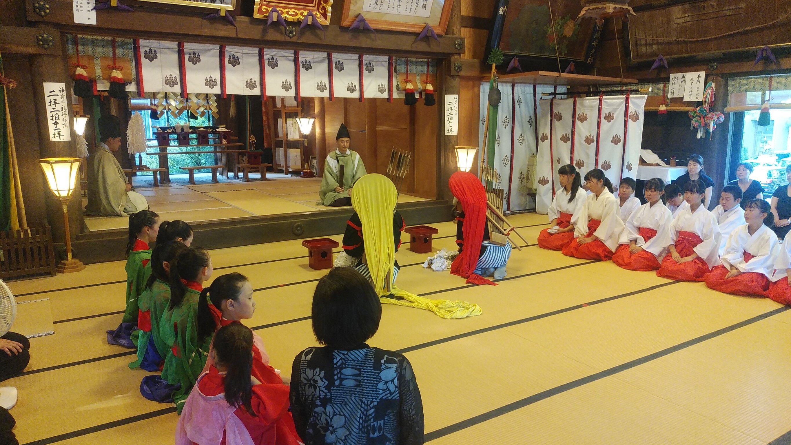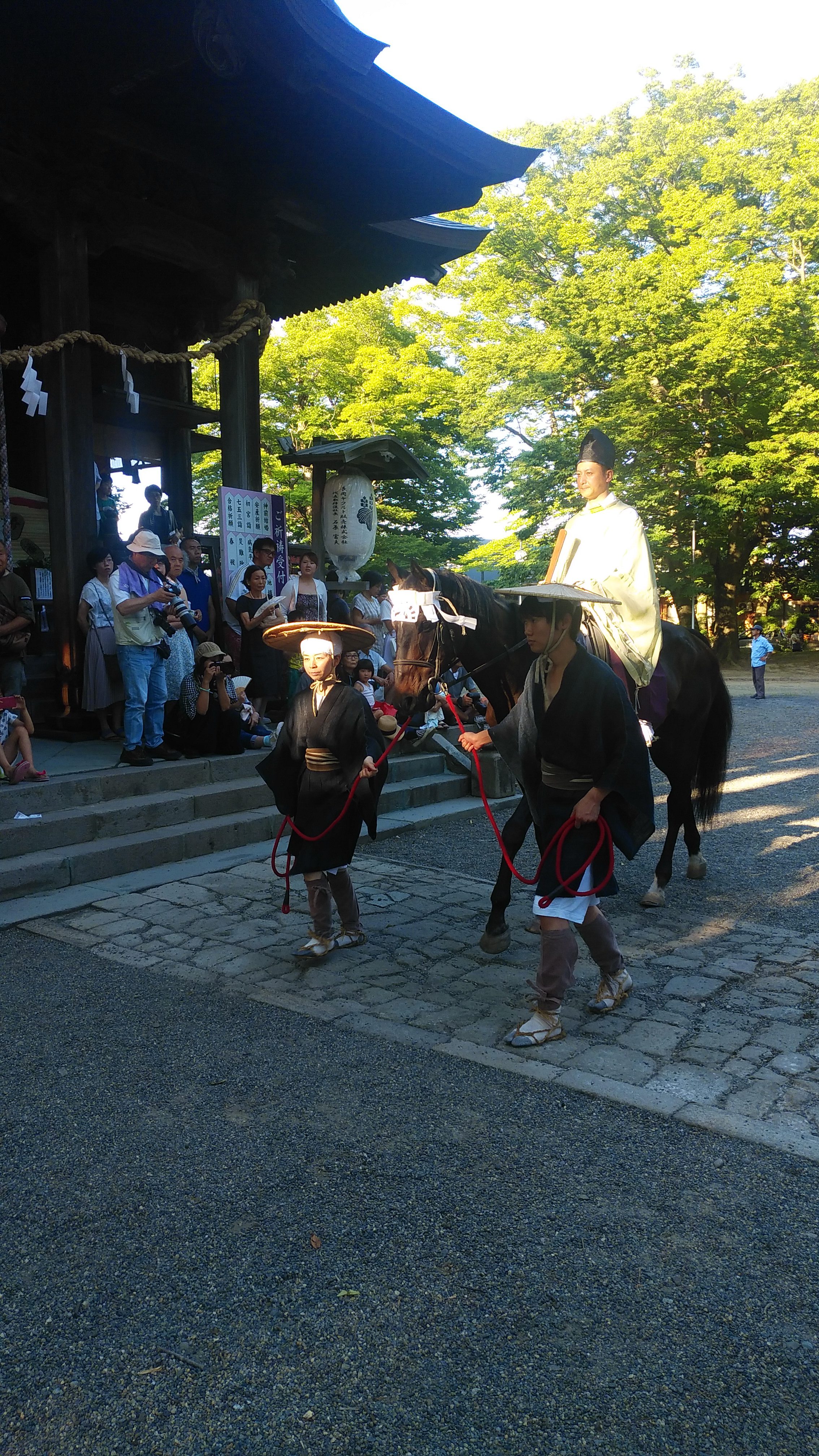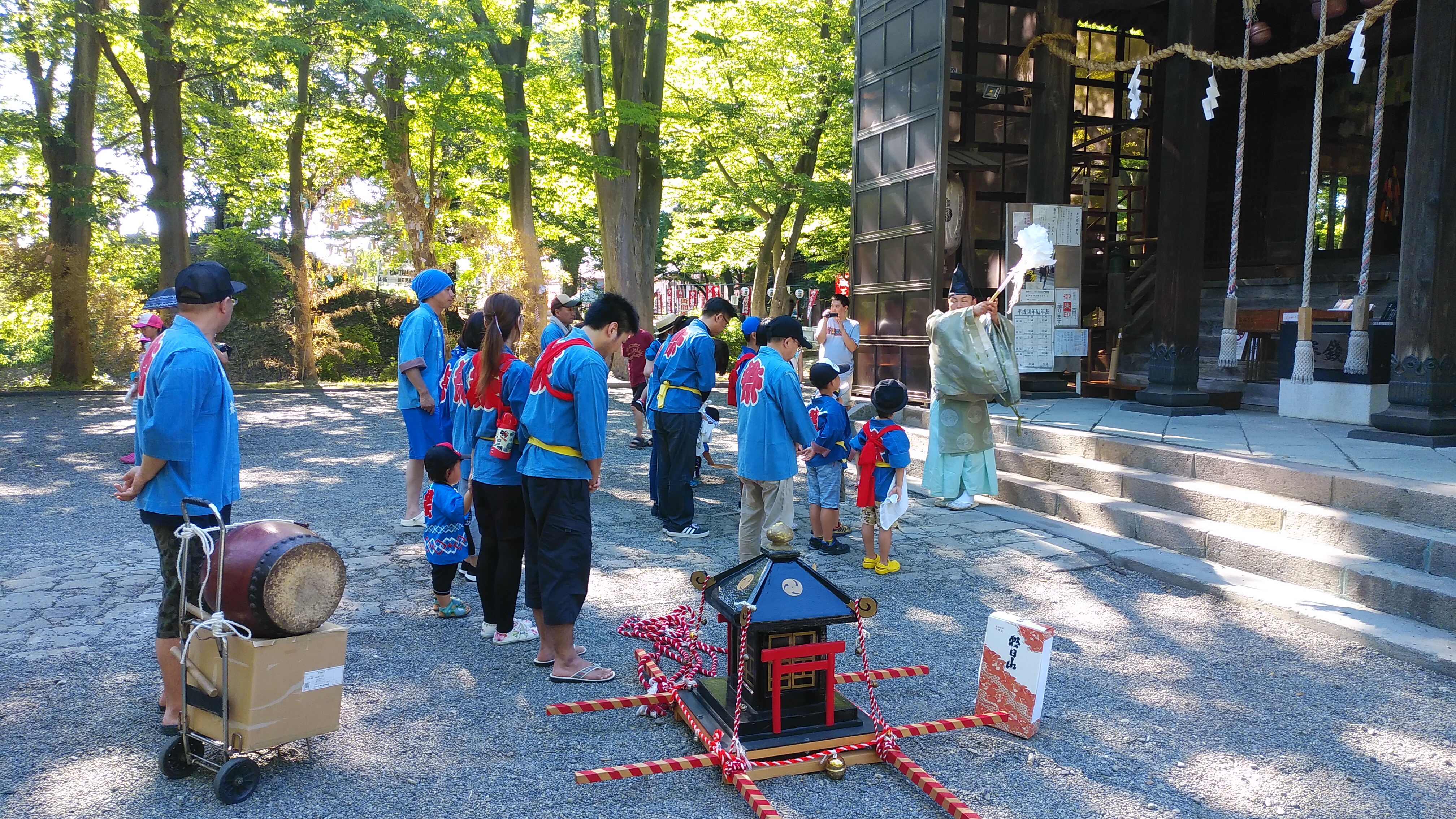 昨年は雨の中での祭礼でしたが、今年は打って変わって猛暑の中での祭礼となりました。しかし祭礼が始まるとロウソクが消えるほどの強い風が時折吹き込み、体感気温をいくらか下げてくれました。氏子会長さんによると、「毎年お祭りが始まると強い風が吹くんだよ」とのことでした。