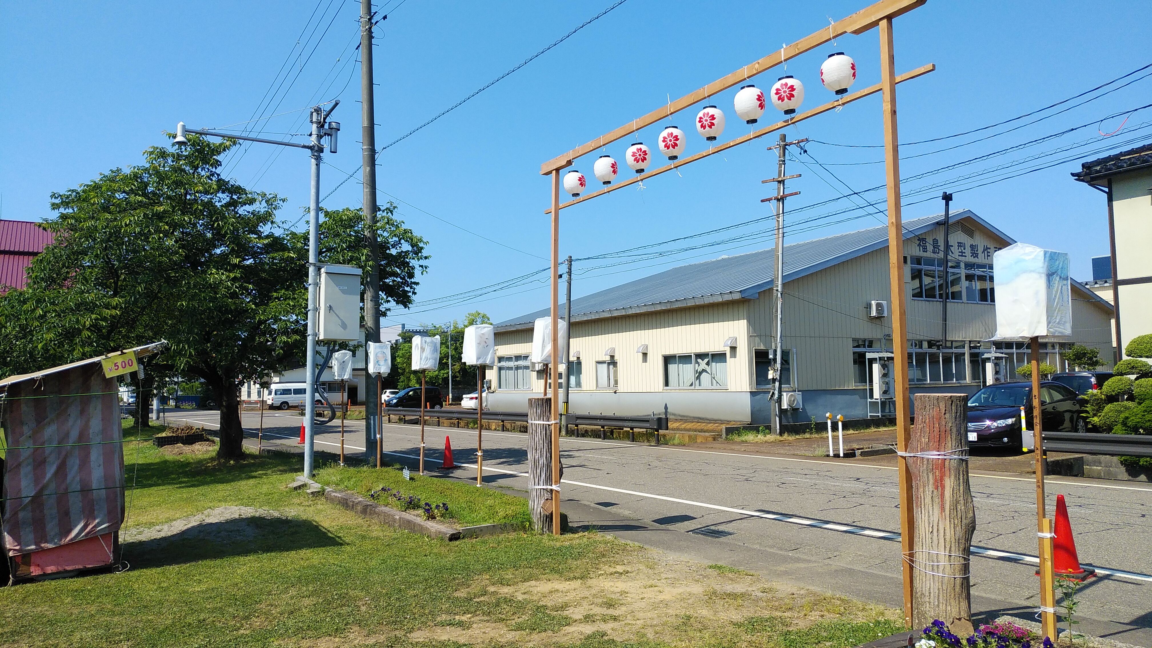 会場となった公園は町内のグランドゴルフ会の皆様が整備に力を入れているようで、芝生が綺麗な公園でした。また地域のお子様が書かれた提灯で飾り付けられ、お祭りの雰囲気をより一層高めていました。