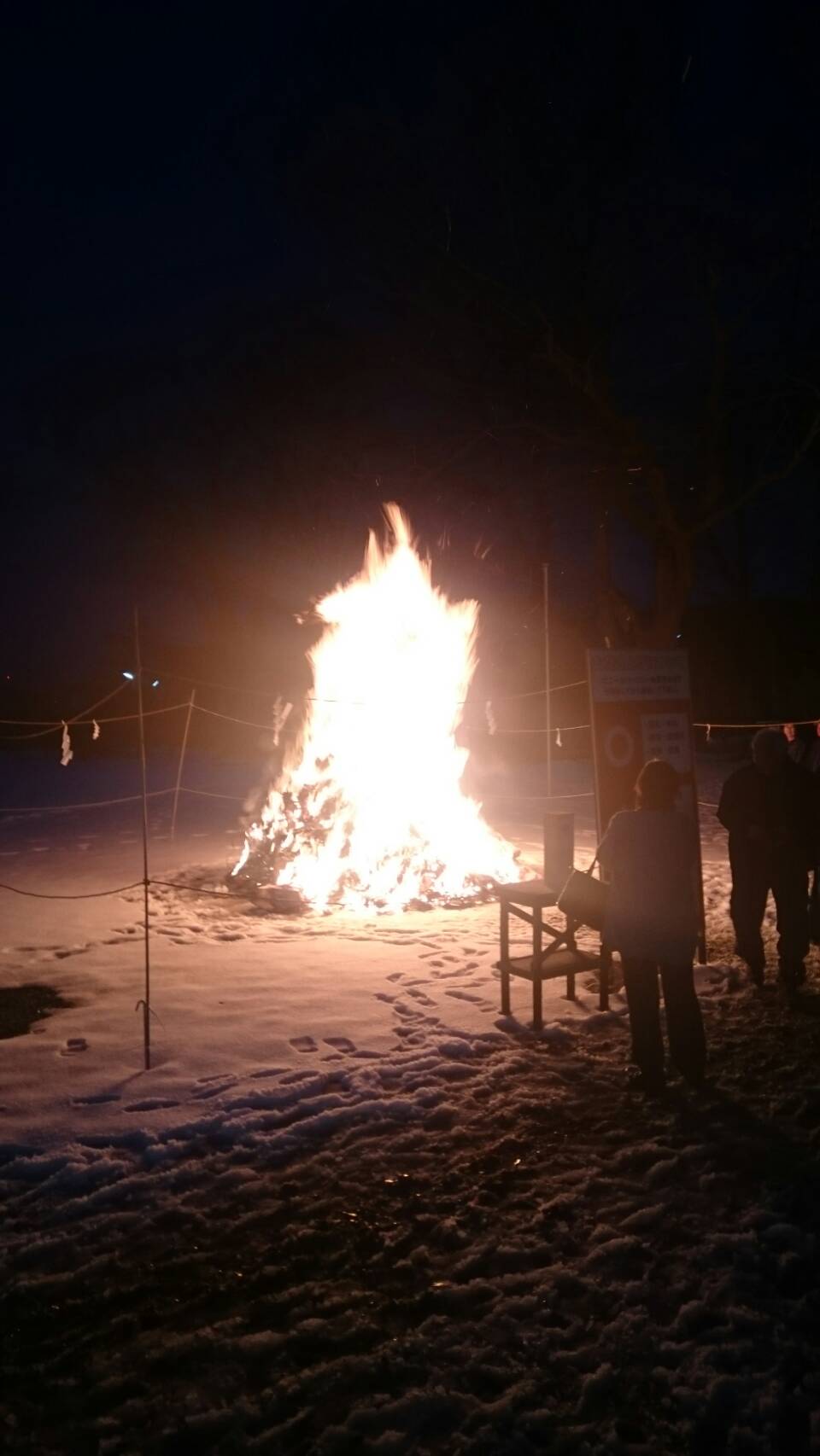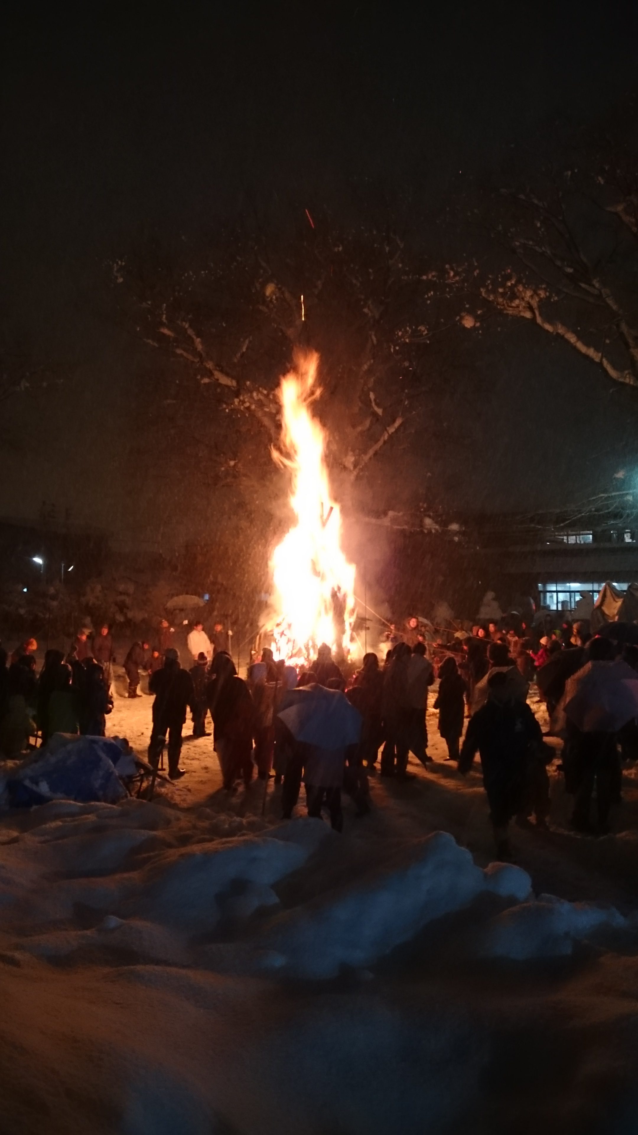 子どもさんたちは御守りや書初めを火の中に入れたり、配られたするめを焼いたり、わいわいと楽しみながら地域の伝統に触れていました。なかには食べ終わって雪合戦で遊ぶ子もいました。