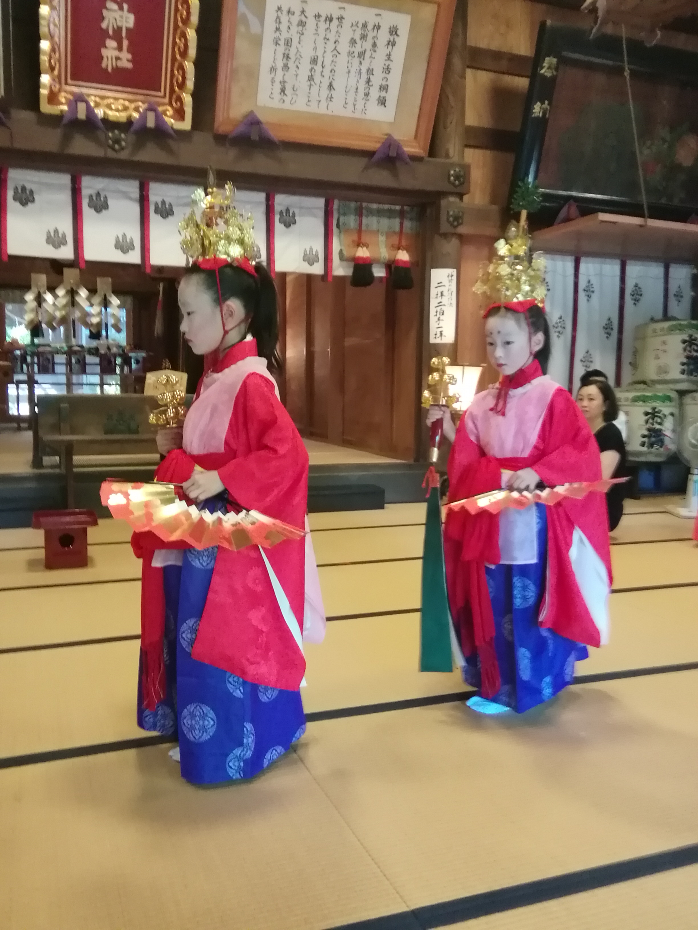 明日は拝殿において稚児舞の奉納と宵宮神事が執り行われます。(吉)