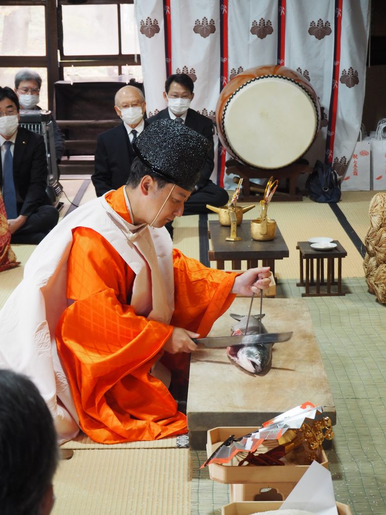 祭典内容は古代祭祀の特色が色濃く残っており、神饌の鮭に宮司が手を触れずに包丁と菜箸で捌いて調理をする「年魚行事」は、新聞等でご覧になったかたもいらっしゃるかもしれません。