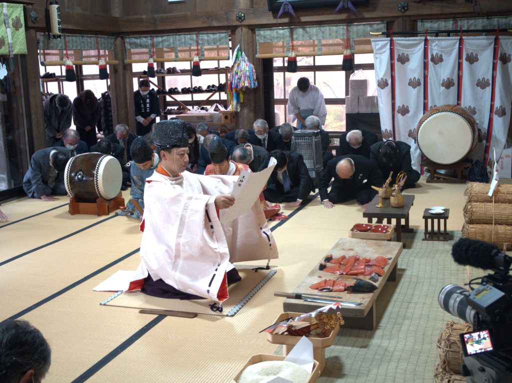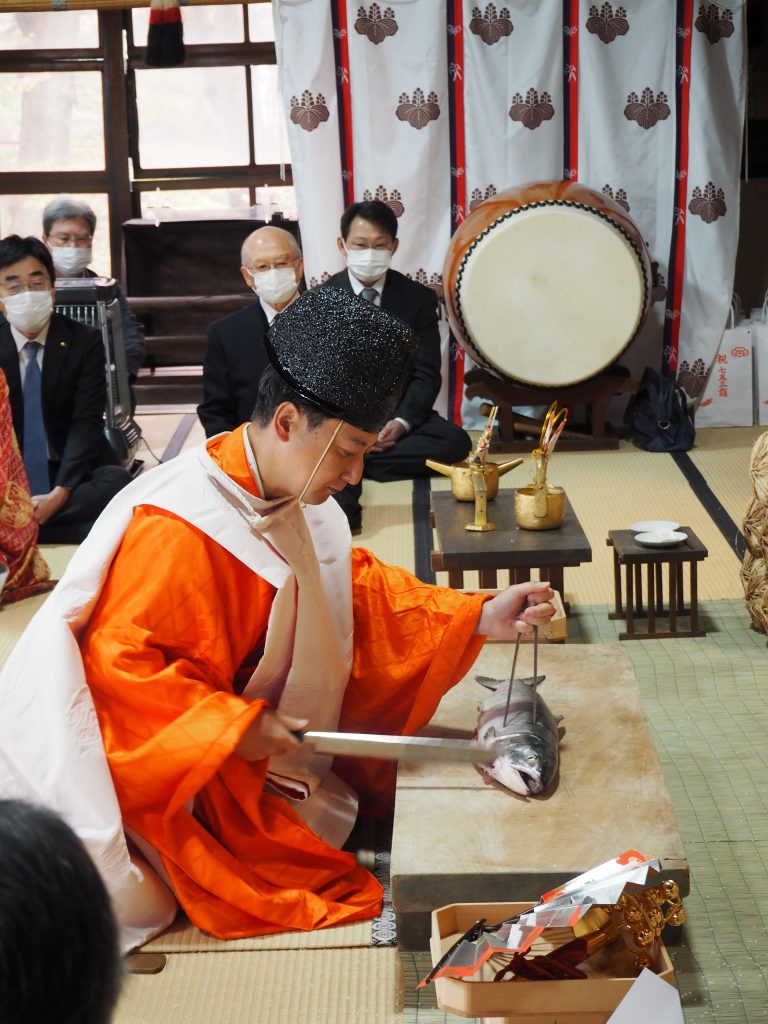 一般の方も見学可能ですので、ご興味がある方は社務所までお申し出ください。その際、ご招待者様を優先させていただきますので、拝殿外からの見学になる可能性もございます点、ご理解のほどお願いいたします(片)