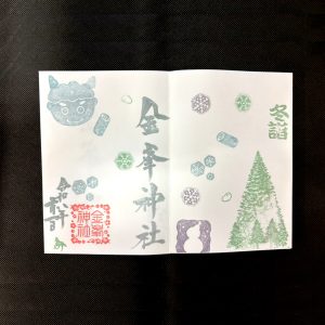 長岡市をはじめ中越地方では今年は大変な大雪になりましたね。2月の御朱印は雪をイメージして、ラメ入りが入った光沢のあるインクを使用します。雪の景色や節分、恵方巻など冬の季節を感じる御朱印になっています。お車での来社にご不安な方はオンラインによる授与も行っております。プロフィール欄のリンクよりお申し込みください。