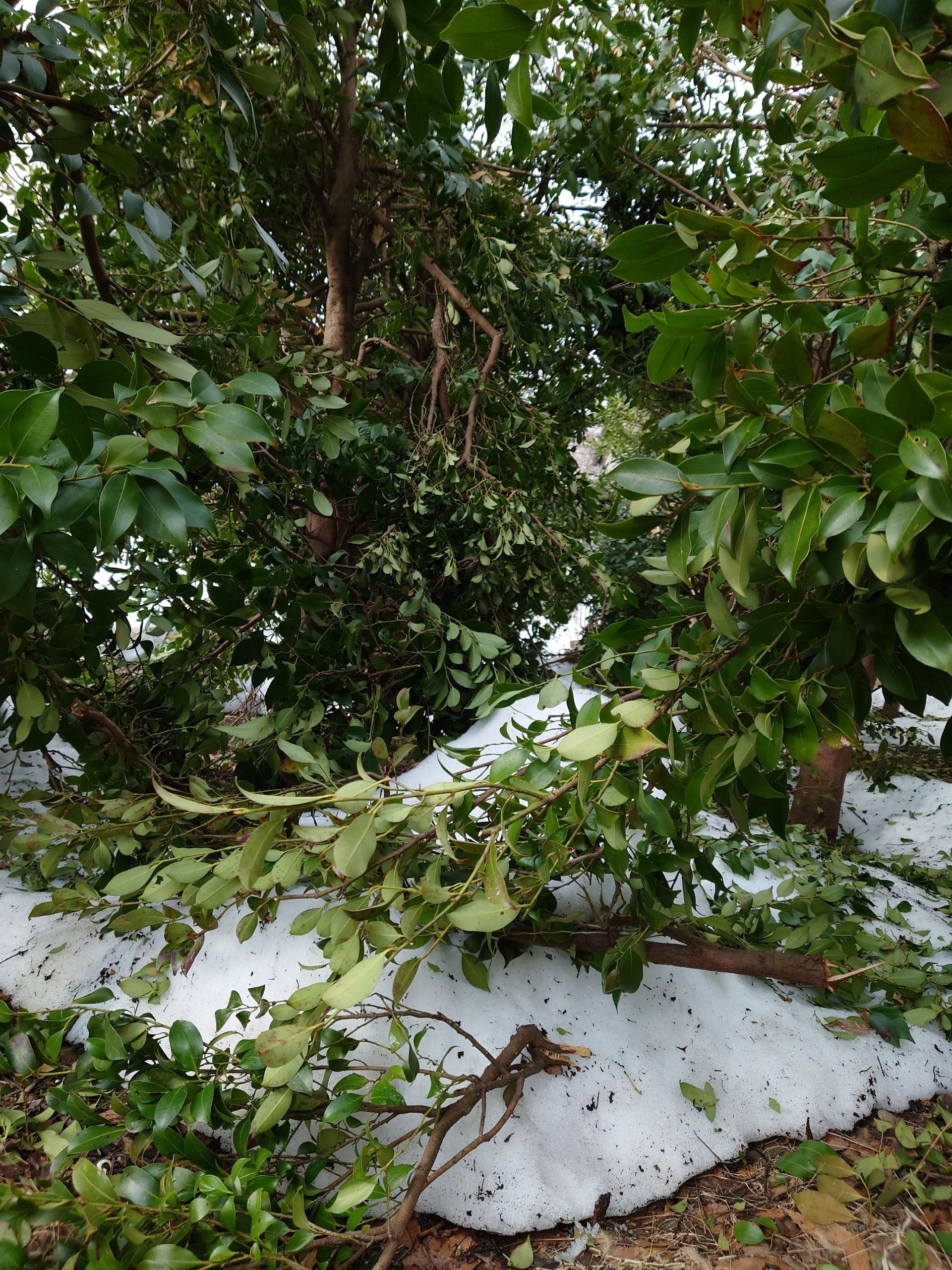 雪に覆われていた間は気づきませんでしたが、雪が解けていくにつれ、境内のあちらこちらで木の枝が折れているのが見つかりました。
