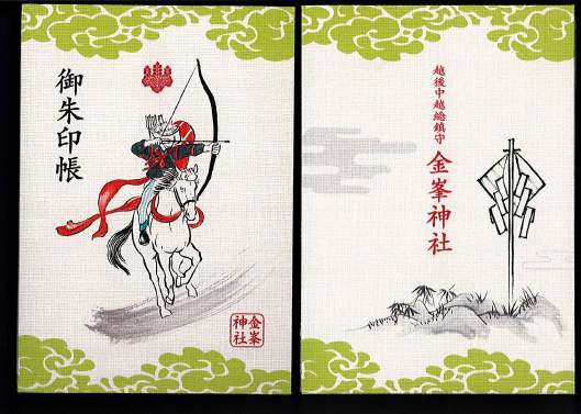 次に新しいオリジナルの御朱印帳をご紹介いたします。当社の7月の例祭で奉納されている流鏑馬がデザインされたものです。ご覧の通り開いていただくと騎手が的に向け弓を射る様子が描かれています。御朱印集めをこれから始めようと思っている方、また今の御朱印帳が書き終わりそうな方、この機会にいかがでしょうか。こちらはすでにお受けいただけます。初穂料は1200円お納めいただきます。(吉)