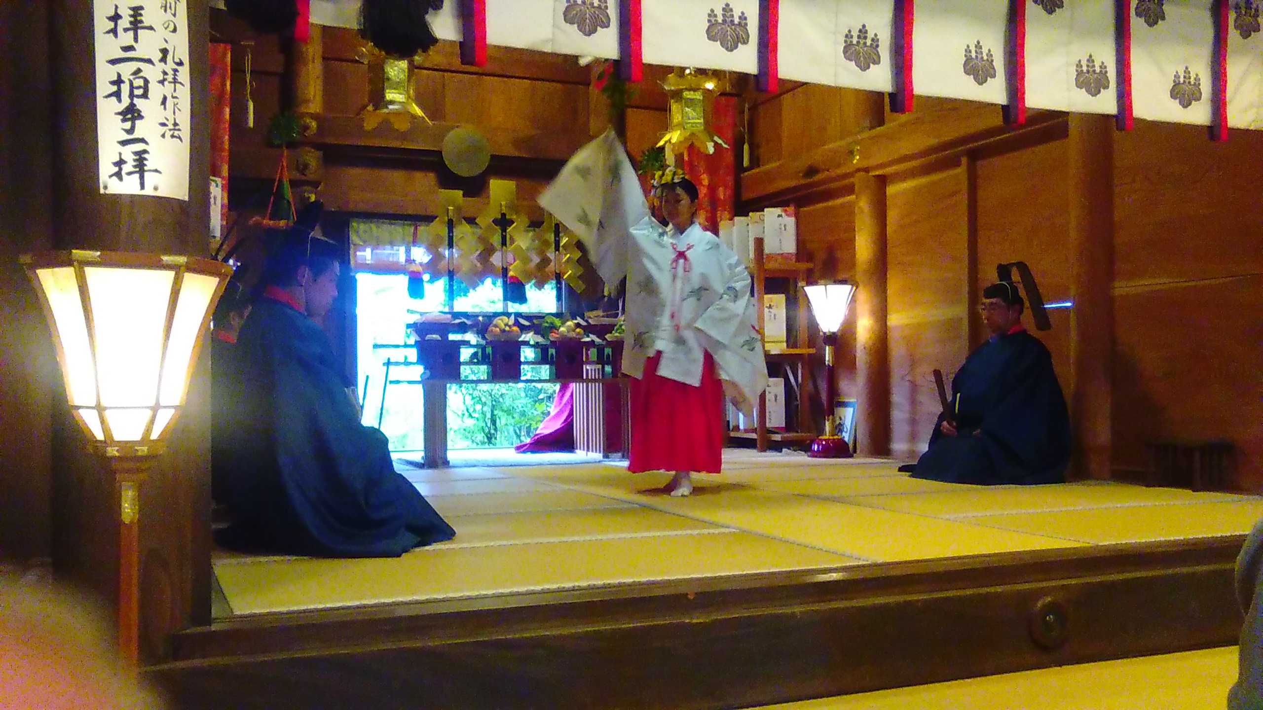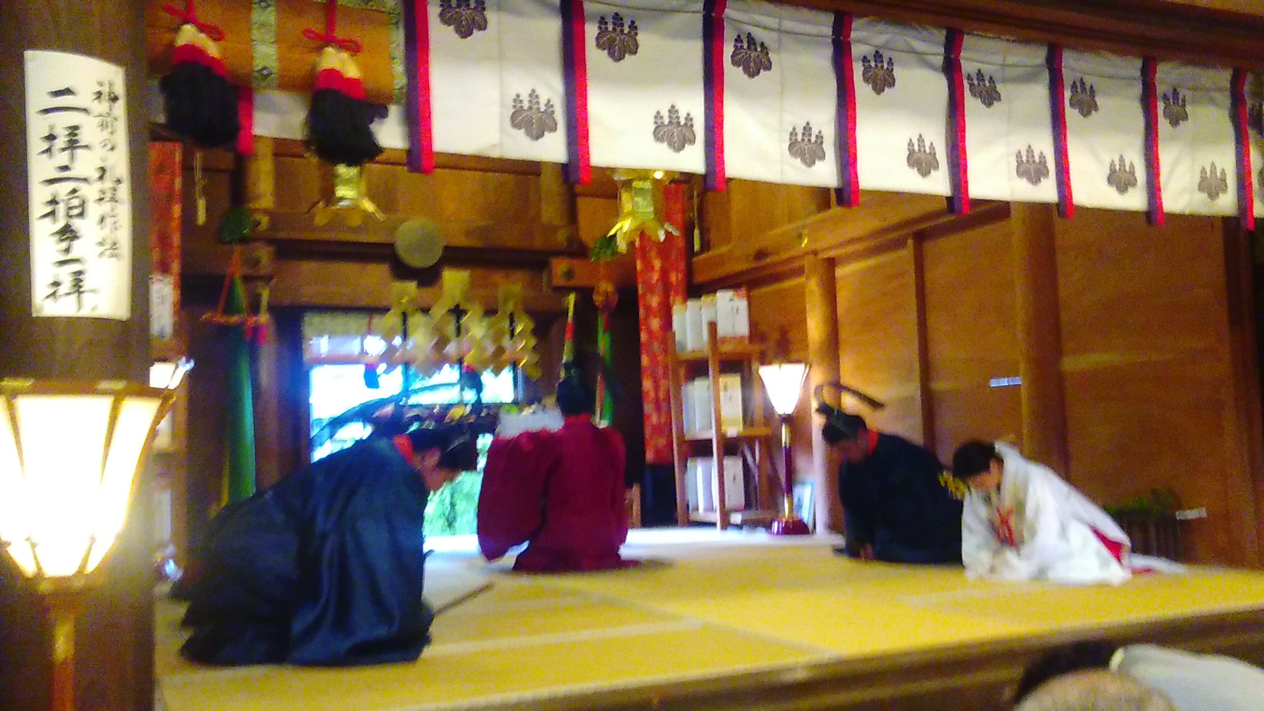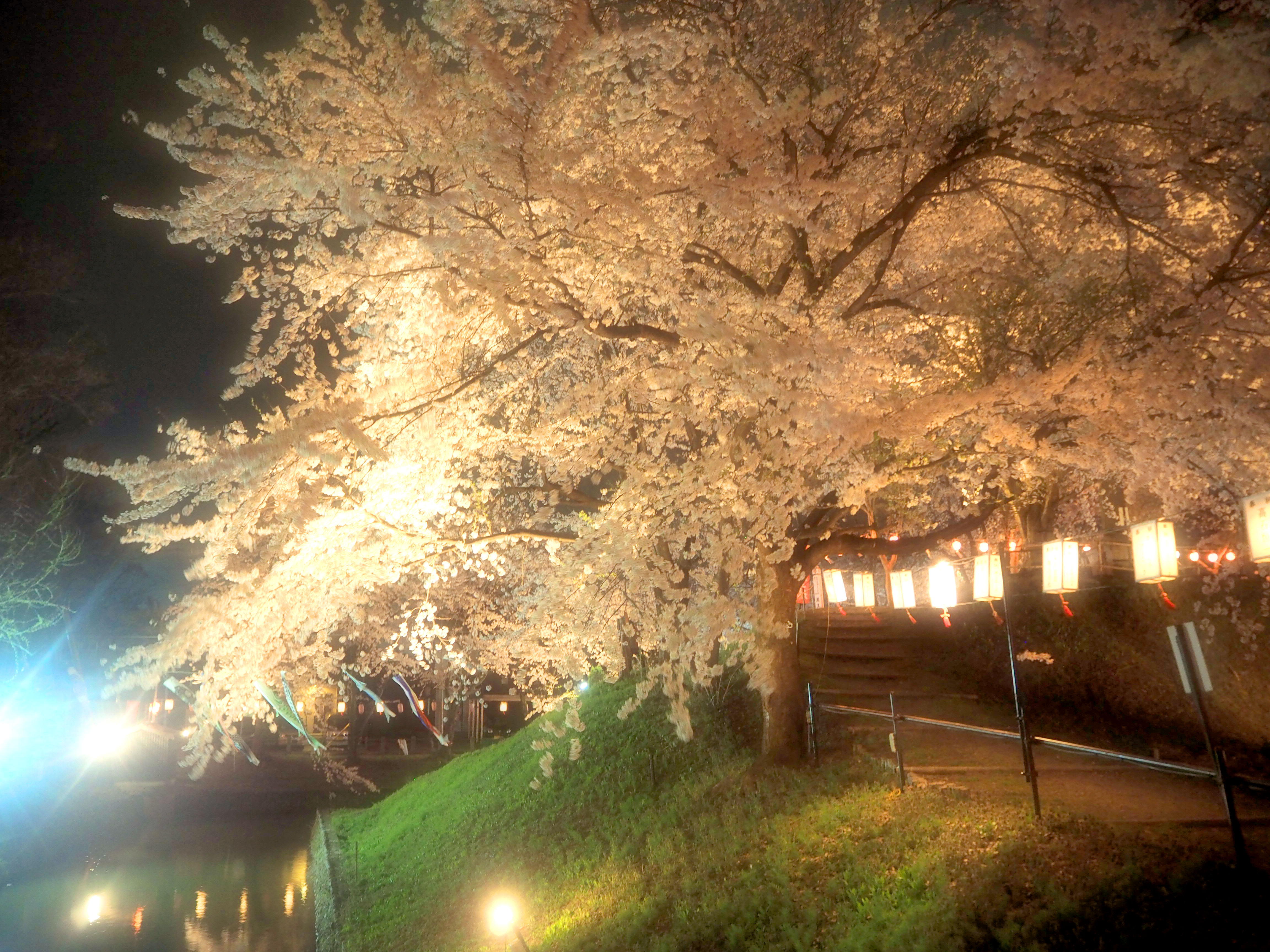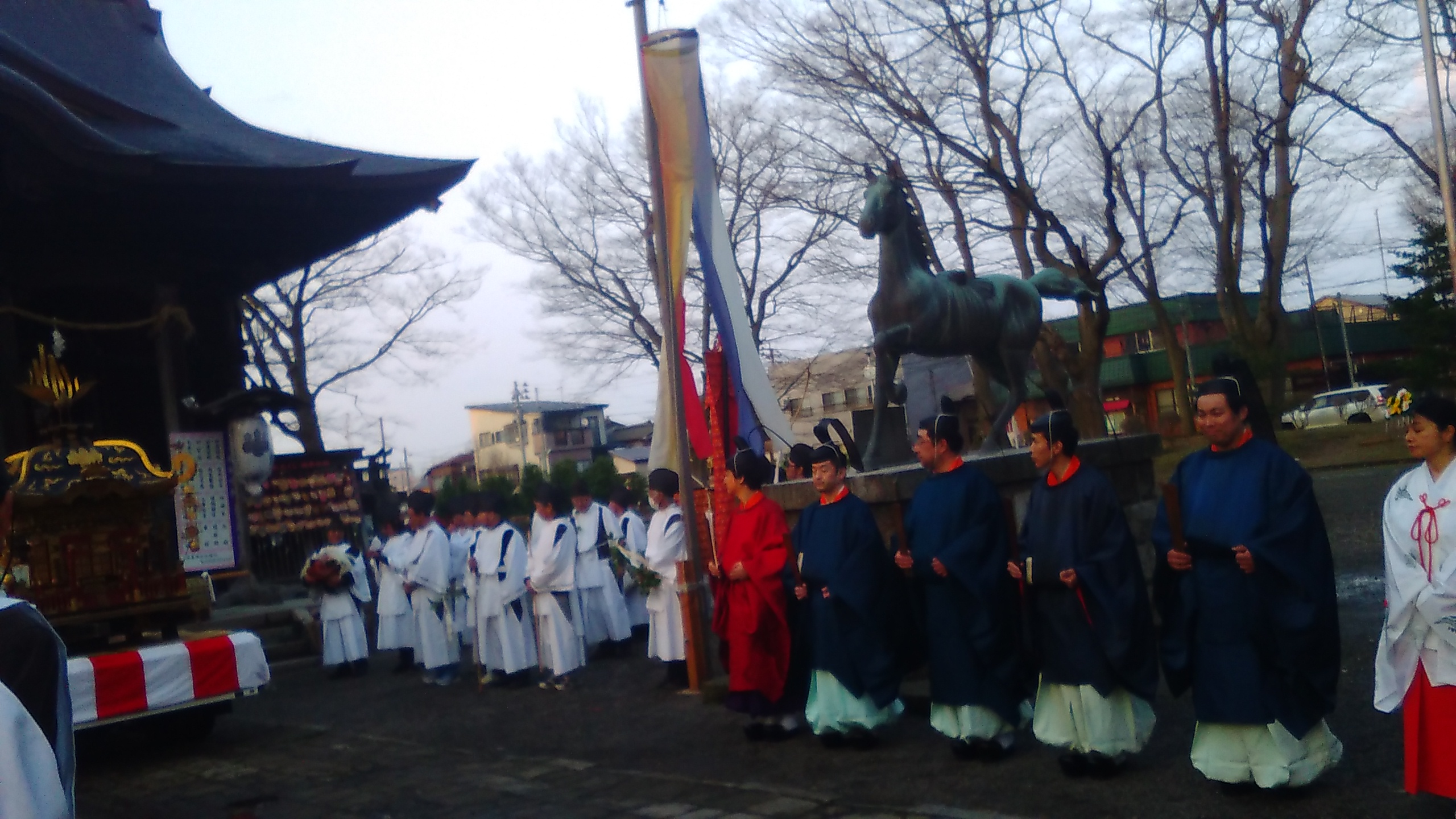 このあと午後7時半より宵宮祭が斎行されます。蔵王堂城跡の桜が夜には提灯に照らされ、幻想的な景色がご覧いただけます。(吉)